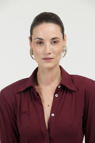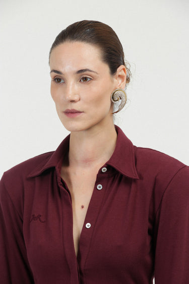 These oversized earrings feature intricate spirals with dazzling strass details, and the clip-on design ensures comfortable wear for all day or night. Expertly crafted in Italy with a combination of Brass and Glass Strass materials, these earrings are the perfect statement piece for any occasion.