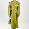 An iconic silhouette reimagined in sumptuous green crocodile eco leather, this oversized trenchcoat commands attention with its refined details. The elevated neckline, gracefully draped raglan sleeves, and sculptural shoulder pads create an air of understated elegance. A detachable belt finished with a gold-tone buckle offers versatile styling options, cinching at the waist or sleeves to suit your mood. Practical side pockets complete this statement piece.