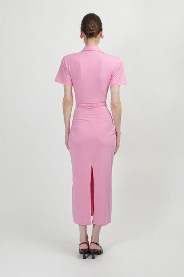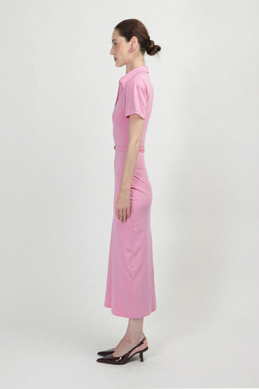 Our signature polo dress featured in jersey with a matching belt. Flattering shape, short sleeves and back slit. Thin shoulder pads.