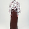 Experience a timeless elegance with our georgette blouse, adorned with a delicate bow neckline and discreet back button closure. The billowing silhouette and strategically placed shoulder pads create a romantic effect. Elevate your style with this luxurious piece.