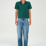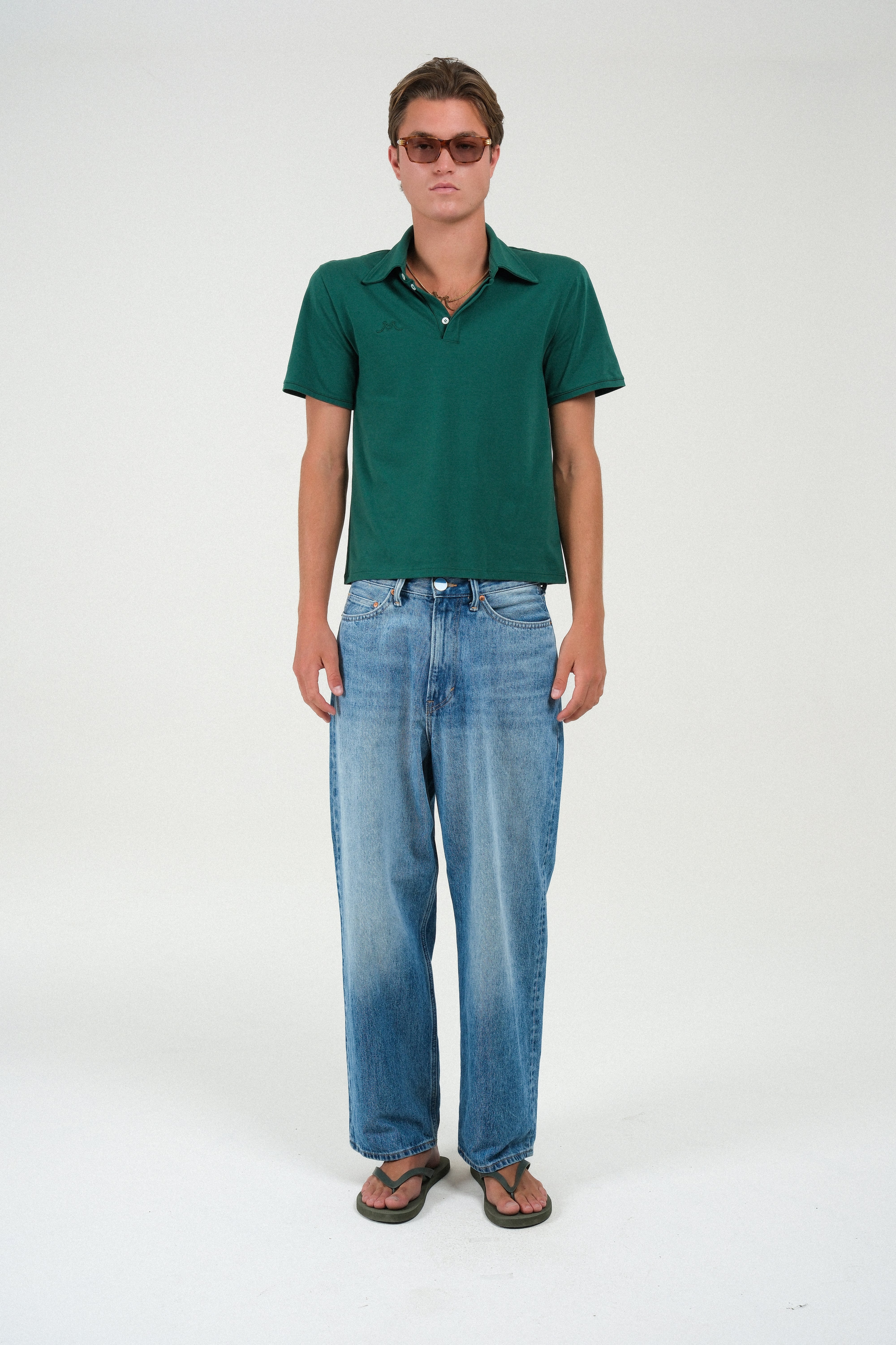 A polo in jersey with invisible buttons enclosure and embroidered logo. Flattering shape, short sleeves and hips length. Thin shoulder pads.