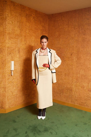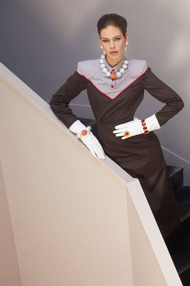 Benidorm, la grande motte for example all share this fascinating contrast between superb architecture and a certain modern tackiness of surroundings. These places startle with extraordinary beauty within seemingly ordinary settings, on the thin line between the minimal and the maximal, the sophisticated and the kitsch. It is this antithesis between a popular seaside resort and exceptional architecture that is transcribed here by the clothing, by this collection which plays with its contradictions. Architecture and shapes in the service of beauty, technique and rigor in the service of art; the functional fused with the superfluous. And designers and architects, radically different, but which occasionally start from the same starting point, a drawing; lines.