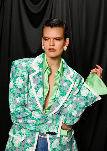 This season, Rowen Rose explores the paradoxes of historical and prestigious private clubs, for members only. A place that supposedly makes you feel at home, and simultaneously is a place of representation. Playing with this contradiction to create an esthetic on its own, this collection lies in a place both decadent and comfortable, formal and informal, revisiting traditional codes to bring them into a modern wardrobe.