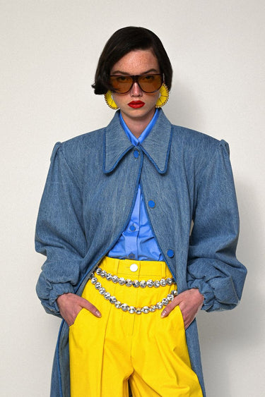 Uniforme (chapitre i) marks the beginning of a pre-collection series based on two interpretations of the term uniform. First, the collections showcase Rowen Rose classics, with their signature shapes and colors, that represent the brand’s uniform. Then, they revisit classic and timeless garments we all have in our wardrobes, such as this season the classic trench coat, the polka dot print and denim, this time as rowen rose staples, as seen through the rowen rose eye. Classics with a RR twist.